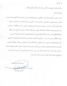 با وجود برخی انتقادات محدود از سوی برخی نمایندگان و تلاش جهت تغییر ایشان، ما روسای ستادهای مرکزی شهرستانهای استان فارس با اعتقادقلبی و راسخ به توانمندیها و شایستگیهای حجت رضایی، درخواست مینماییم، بامساعدت و حمایت های لازم ازایشان،امکان استمرار ایفای نقش مؤثر ایشان در خدمت به مردم عزیز استان فراهم و با توجه به در پیش بودن انتخابات شوراهای اسلامی شهر و روستا به این نکته ضروری توجه و عنایت ویژه داشته باشید.چرا که: استان پهناور فارس همچنان نیازمند آرامش ،به ویژه در حوزه سیاسی و اعتماد عمومی است و هرگونه دخالت ناظرین انتخابات در امور اجرایی این فرایند مهم اجتماعی شائبه مهندسی انتخابات را دامن زده وبدون تردید موجبات نگرانی افکار عمومی و تضعیف ونارضایتی سرمایه های اجتماعی را بدنبال خواهد داشت….!